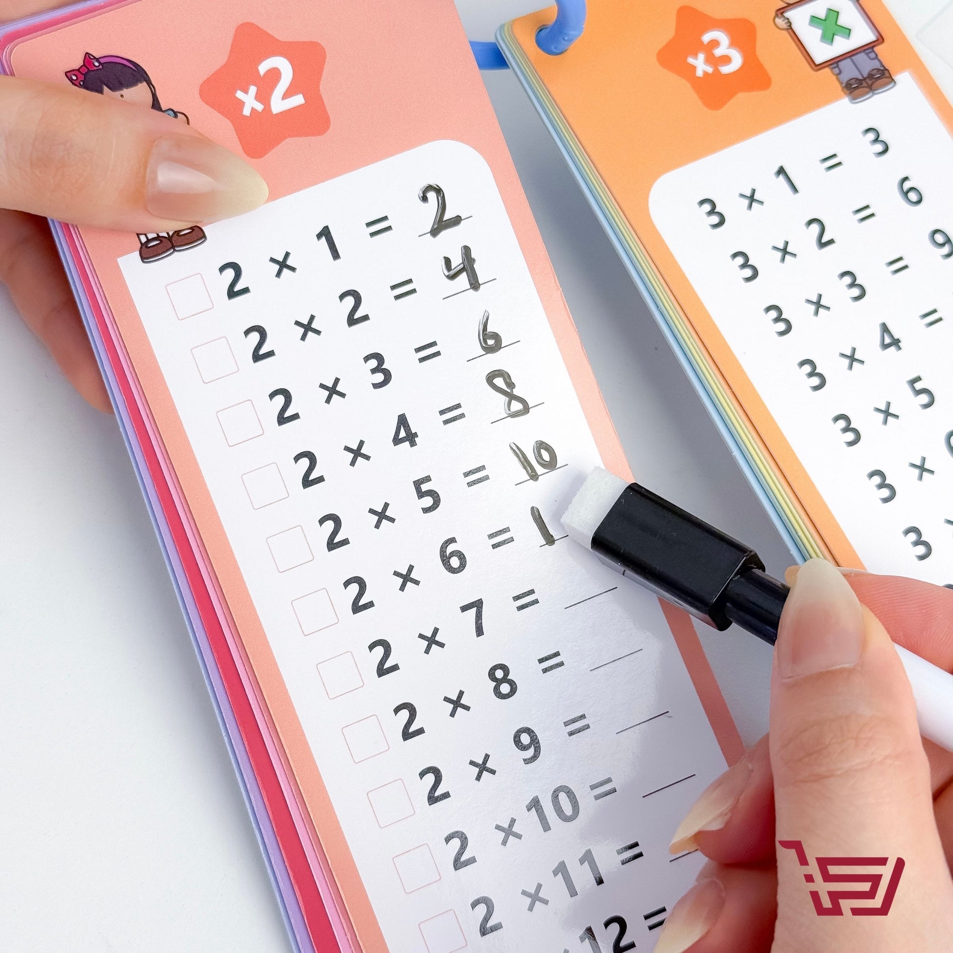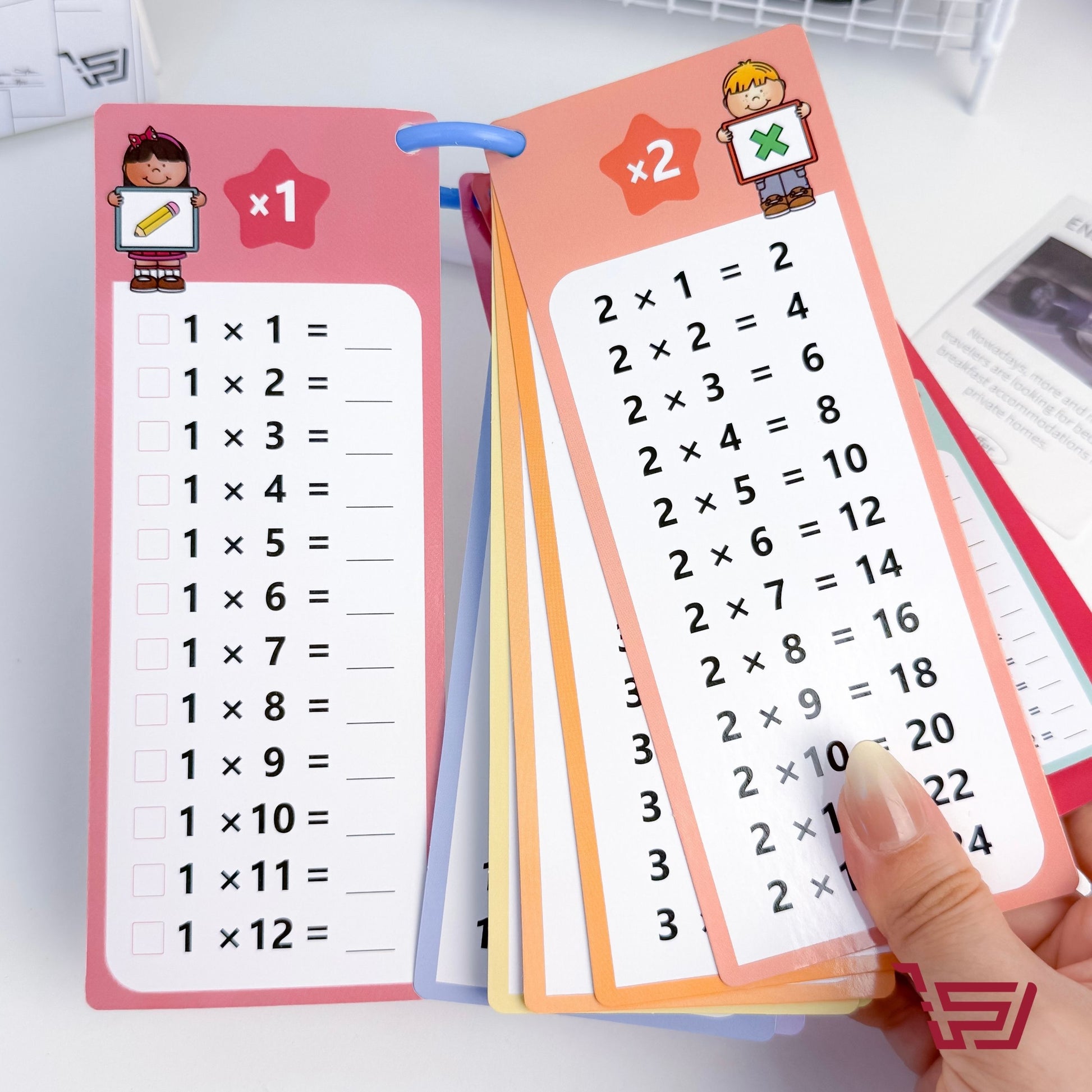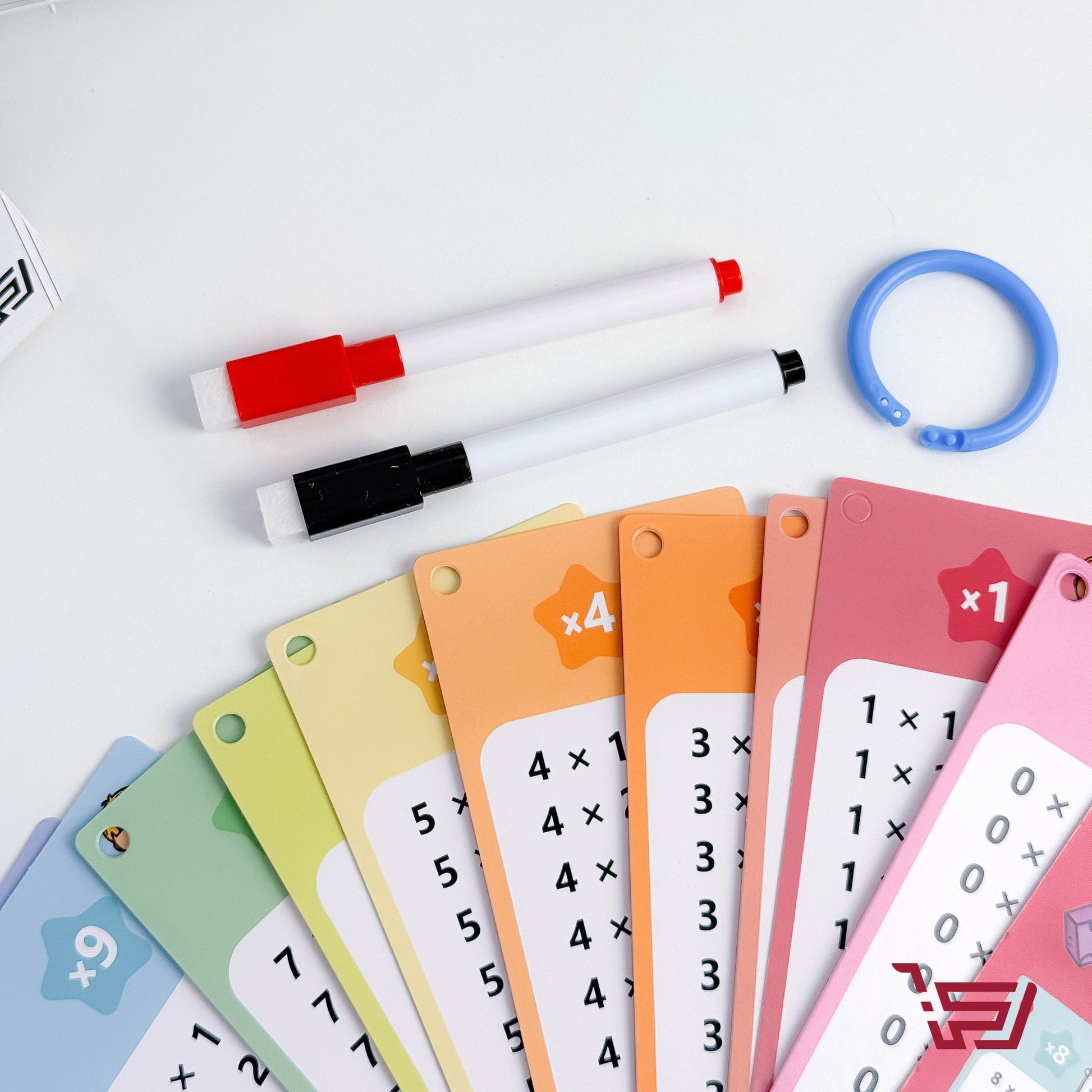 بطاقات تعليم جدول الضرب اقلام وممحاة