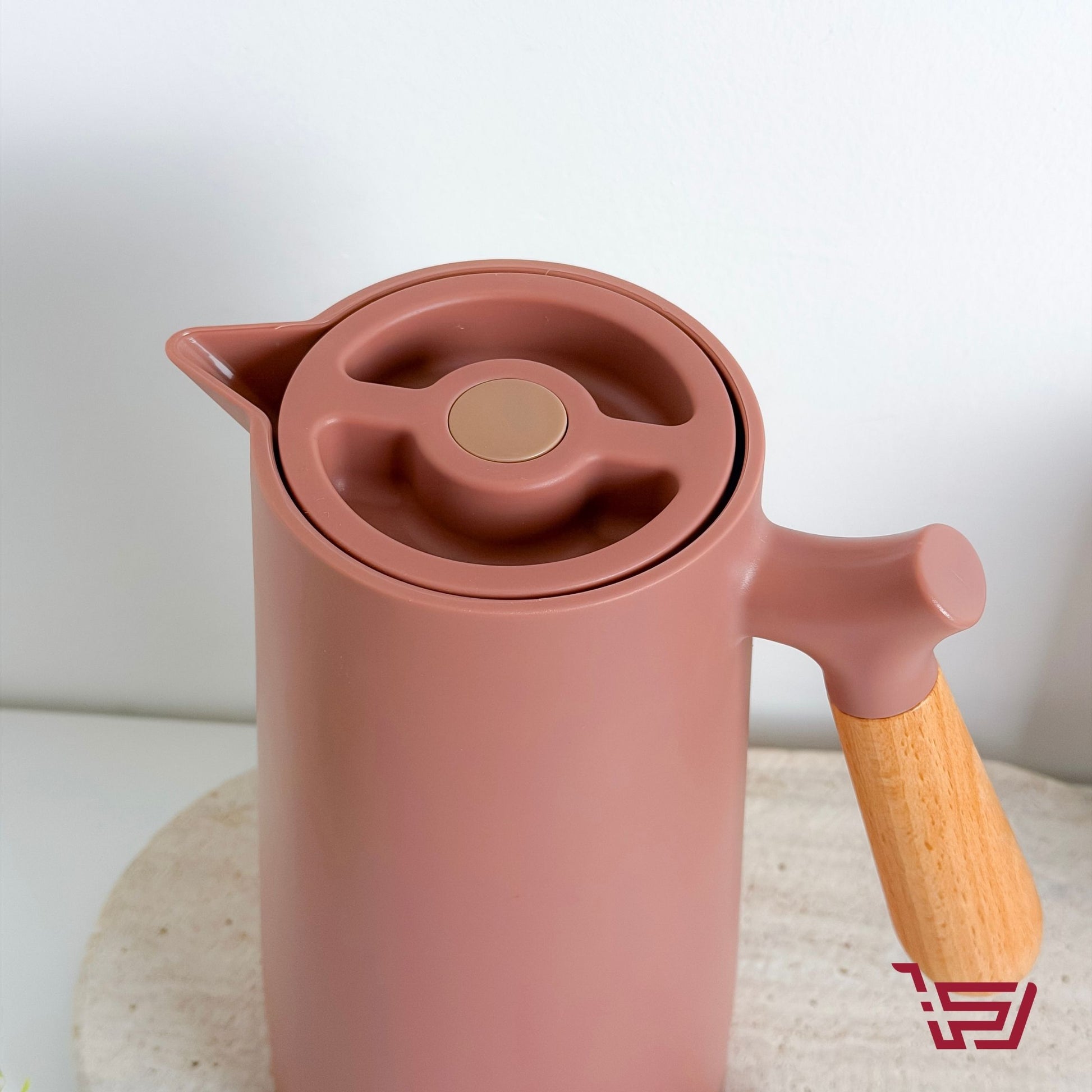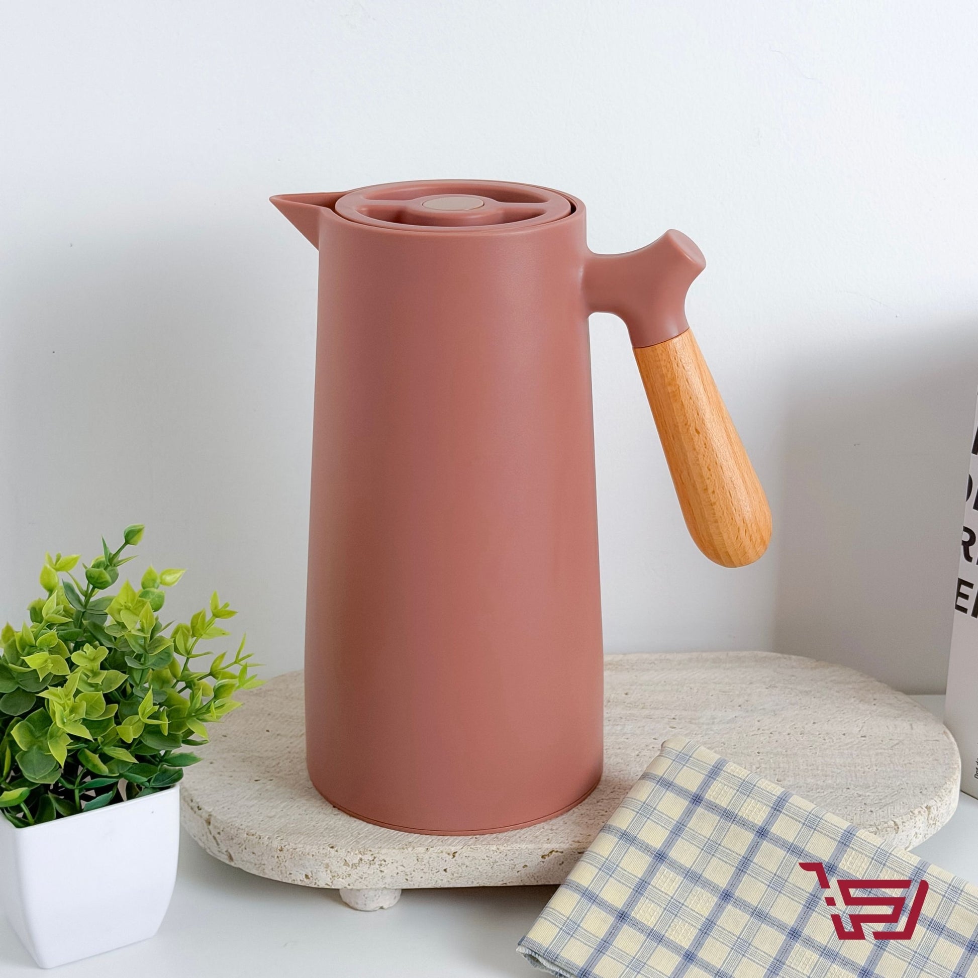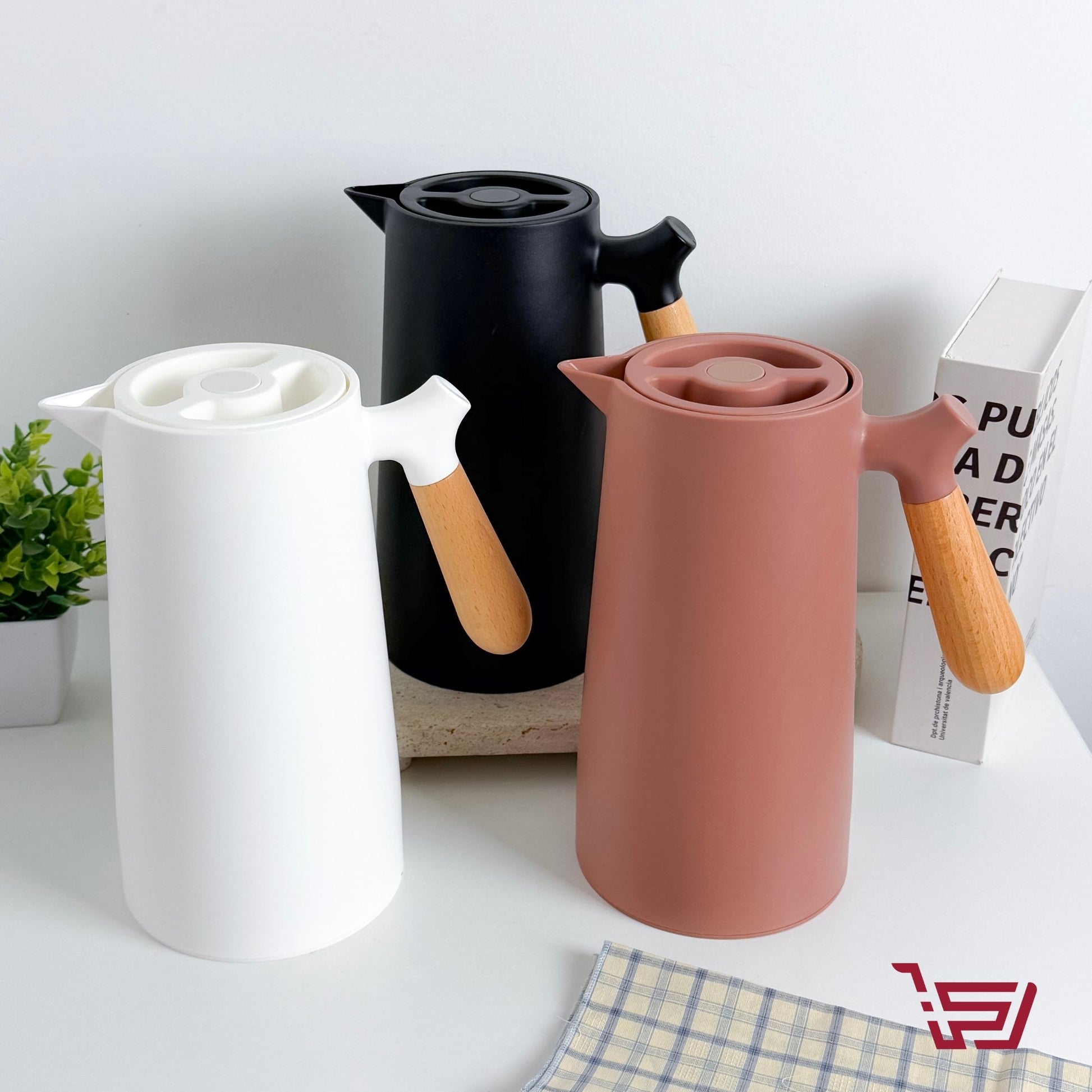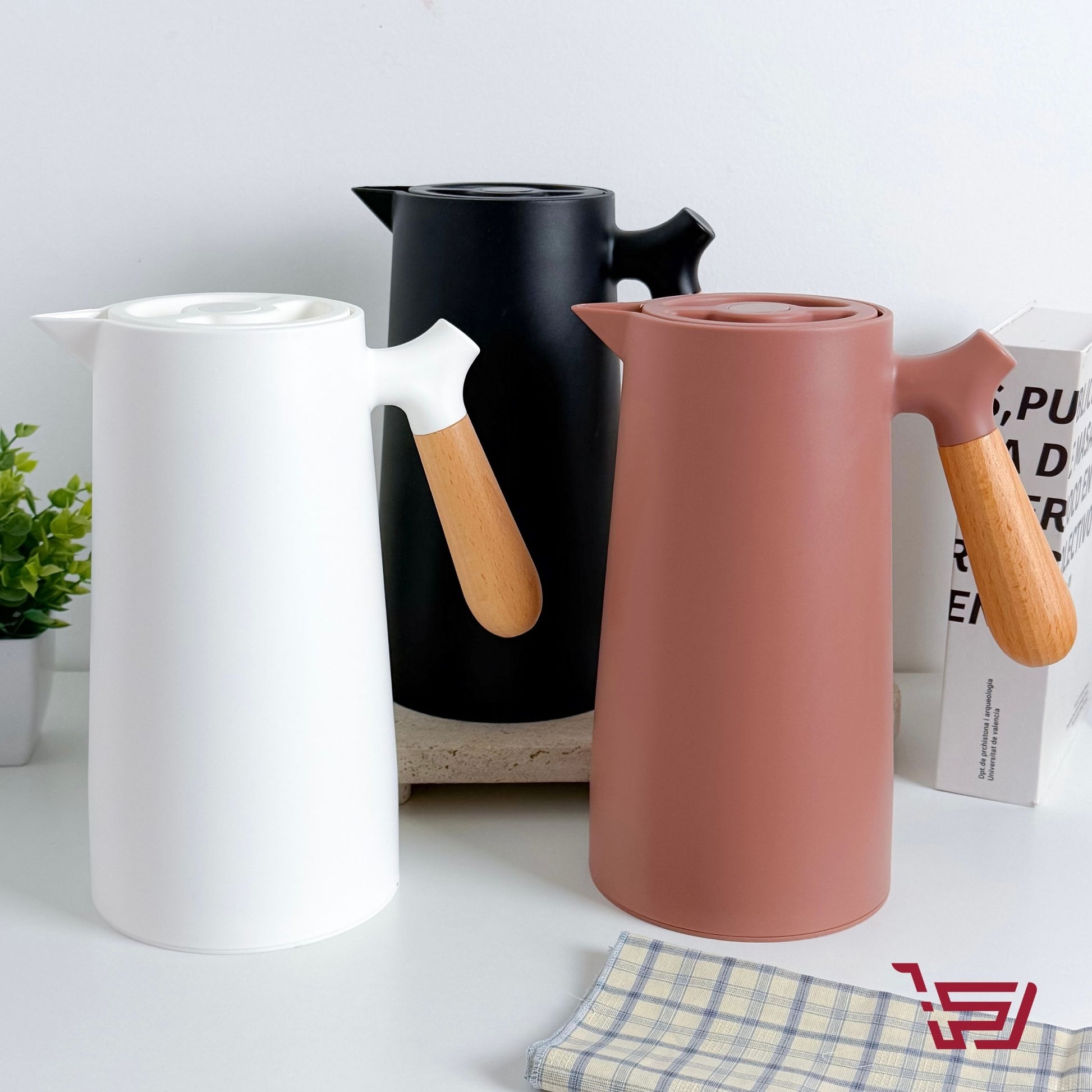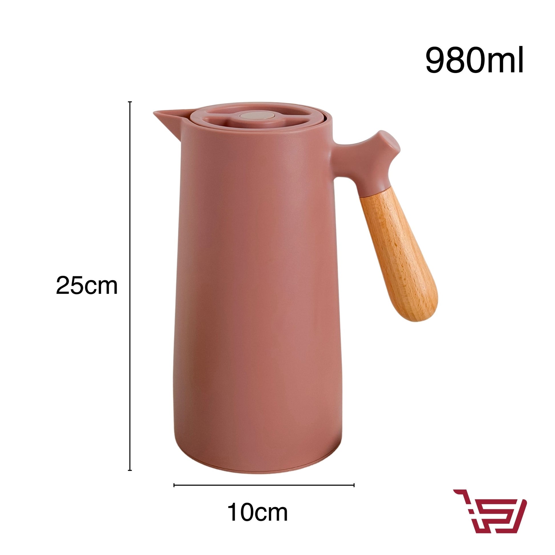يحفظ الحرارة والبرودة لمدة تصل إلى 10 ساعات ، محكم الغلق ومانع للتسرب ذو مقبض من الخشب