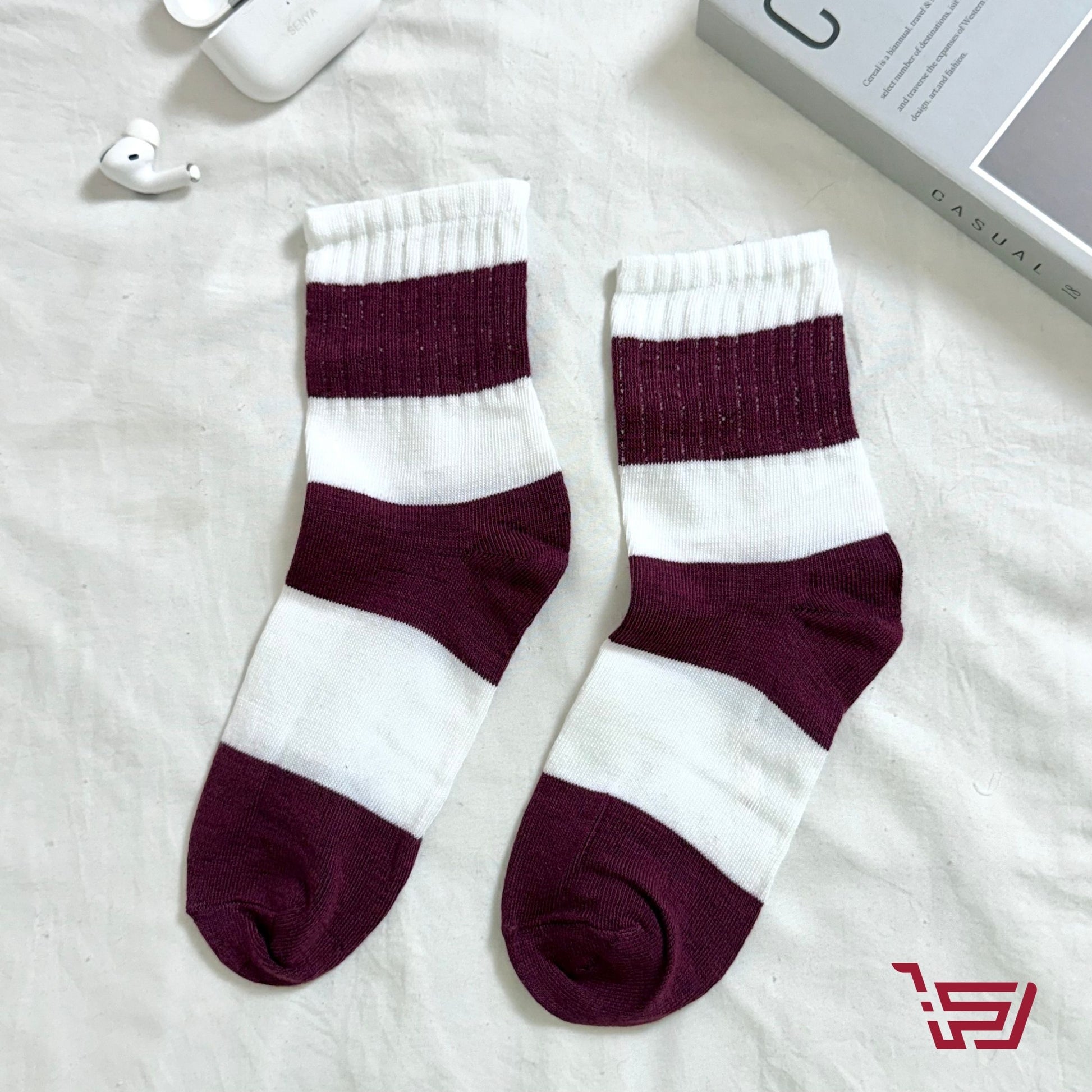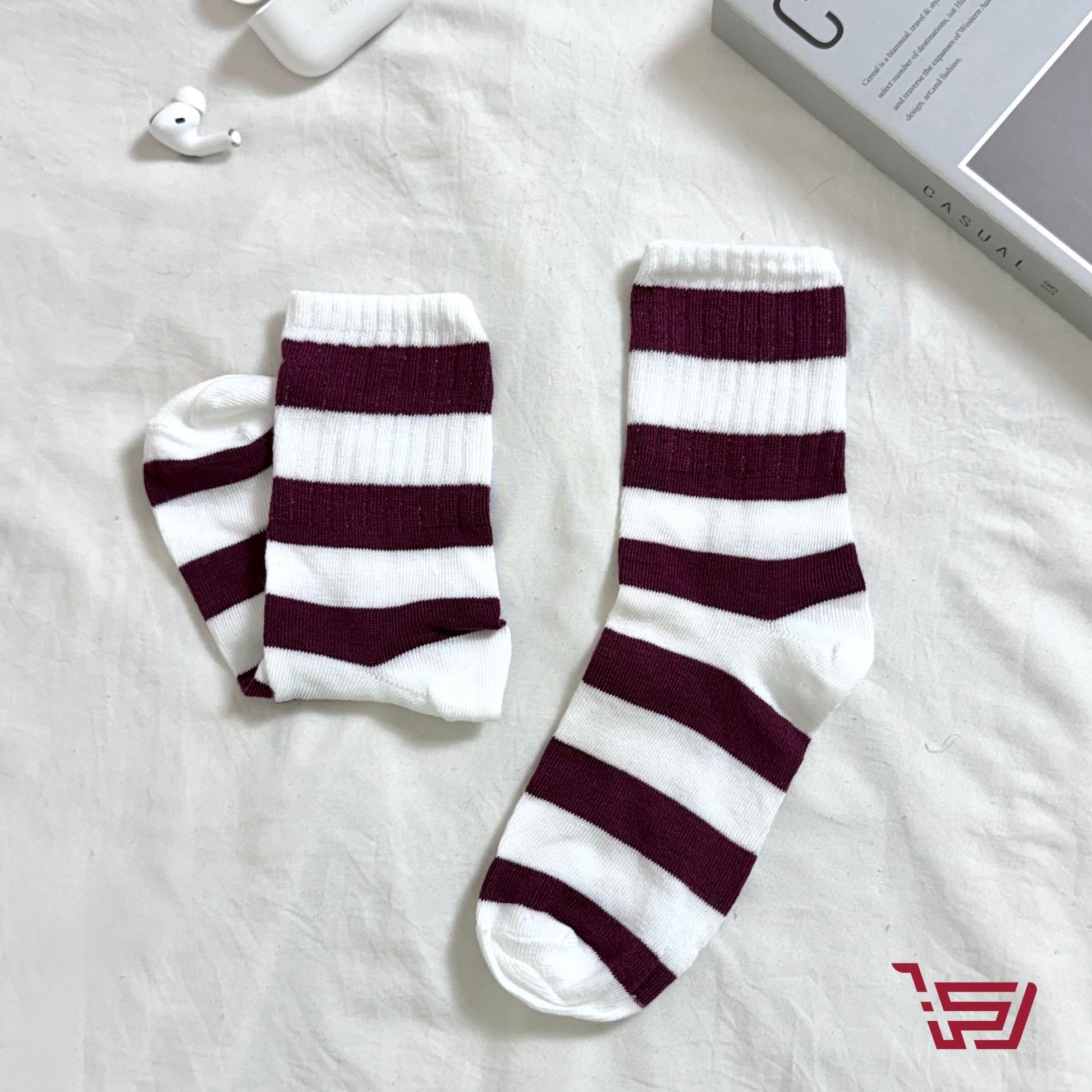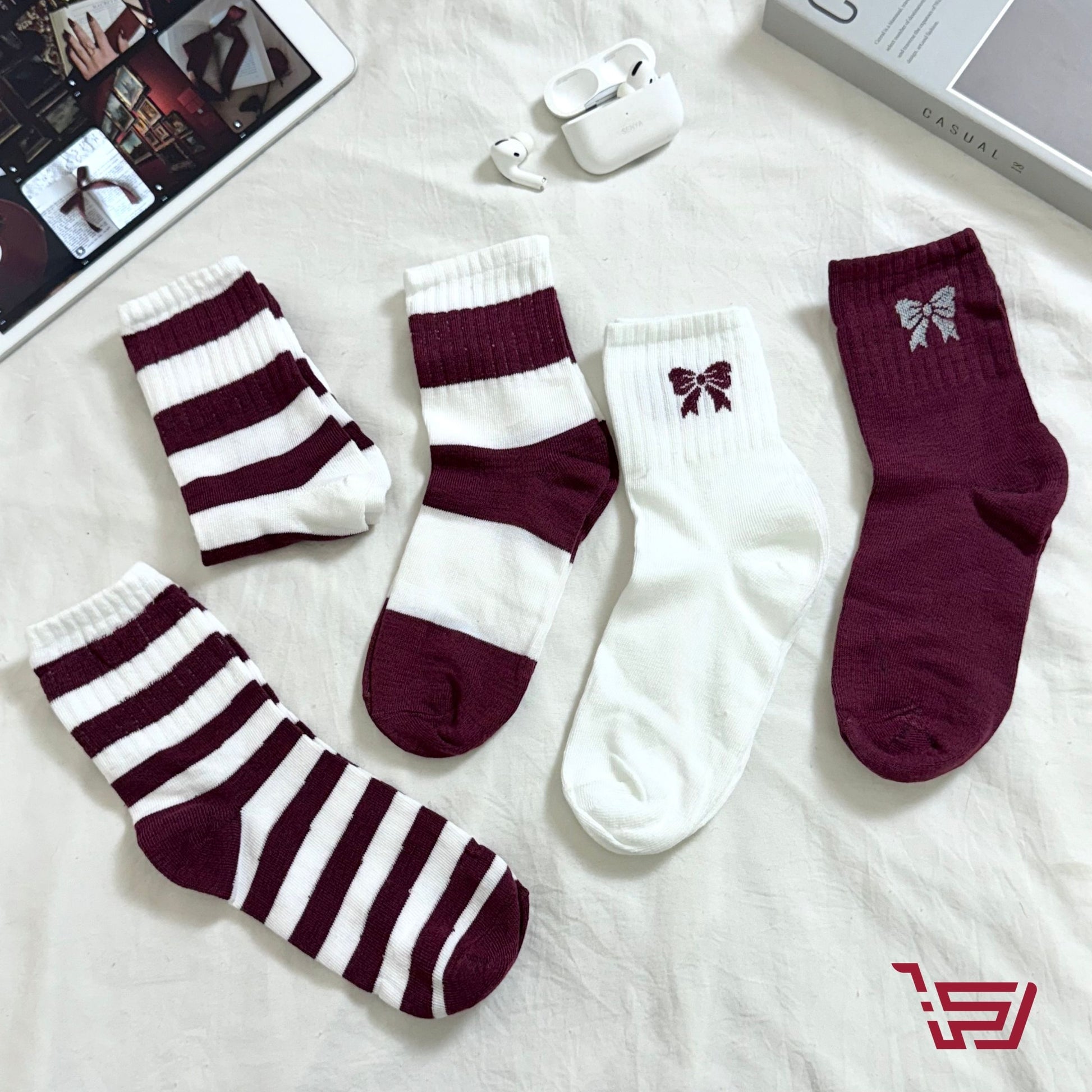 سيت جواريب مخططة وفيونكات
