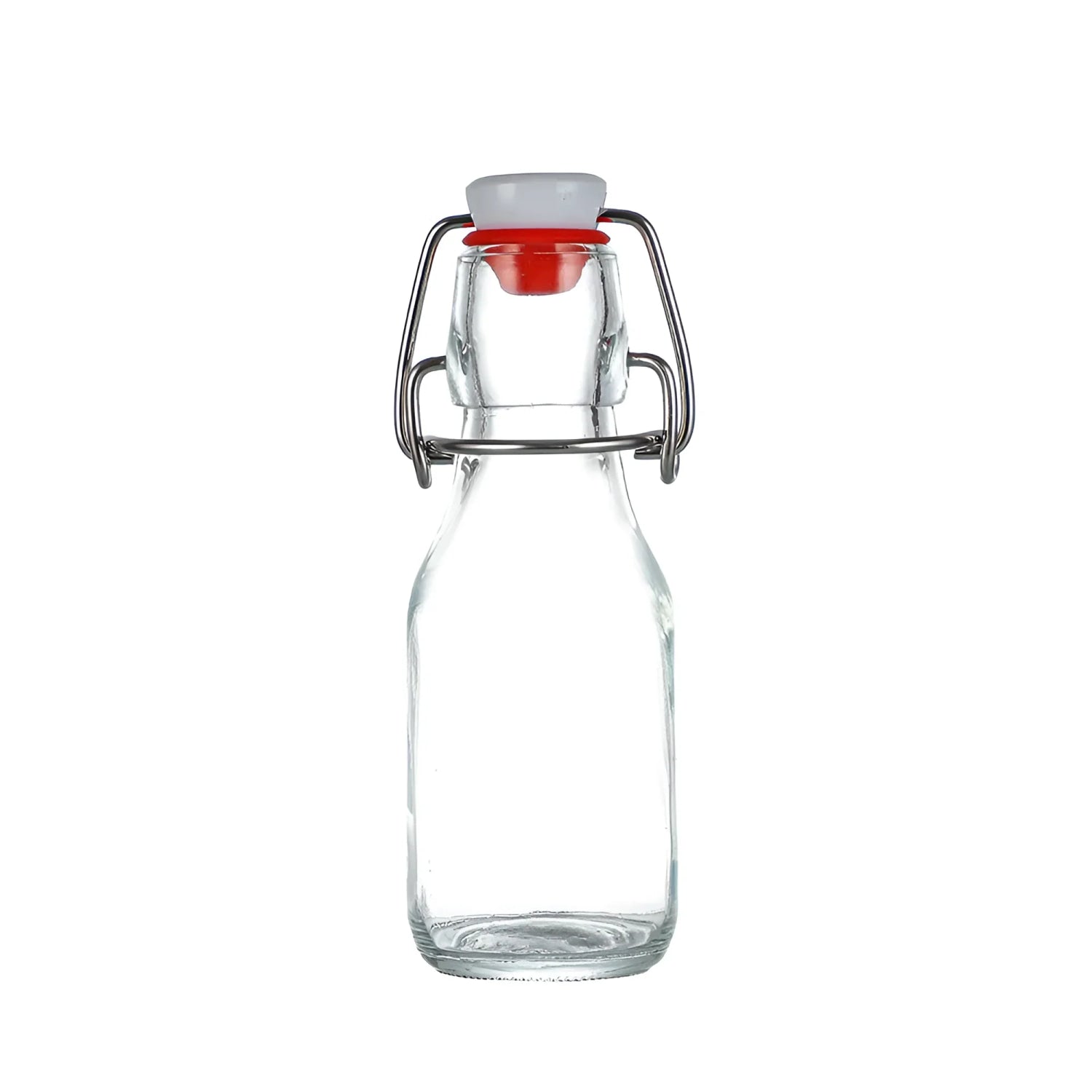 حافظة سوائل زجاجية مزودة بسدادة مطاطية حمراء وقفل معدني محكم مانع للتسرب ودخول الهواء