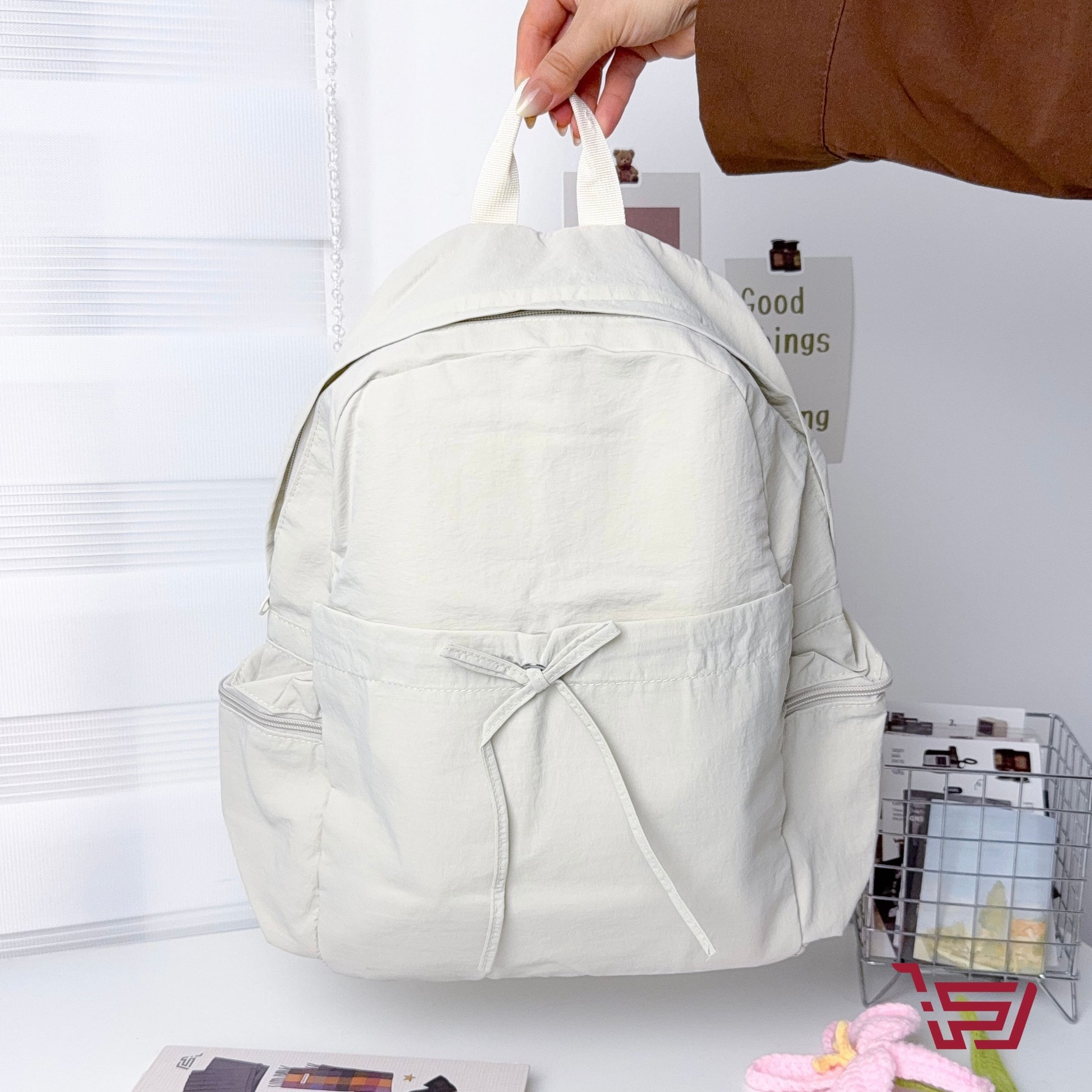 حقيبة ظهر قماش مطري بربطة الفيونكة