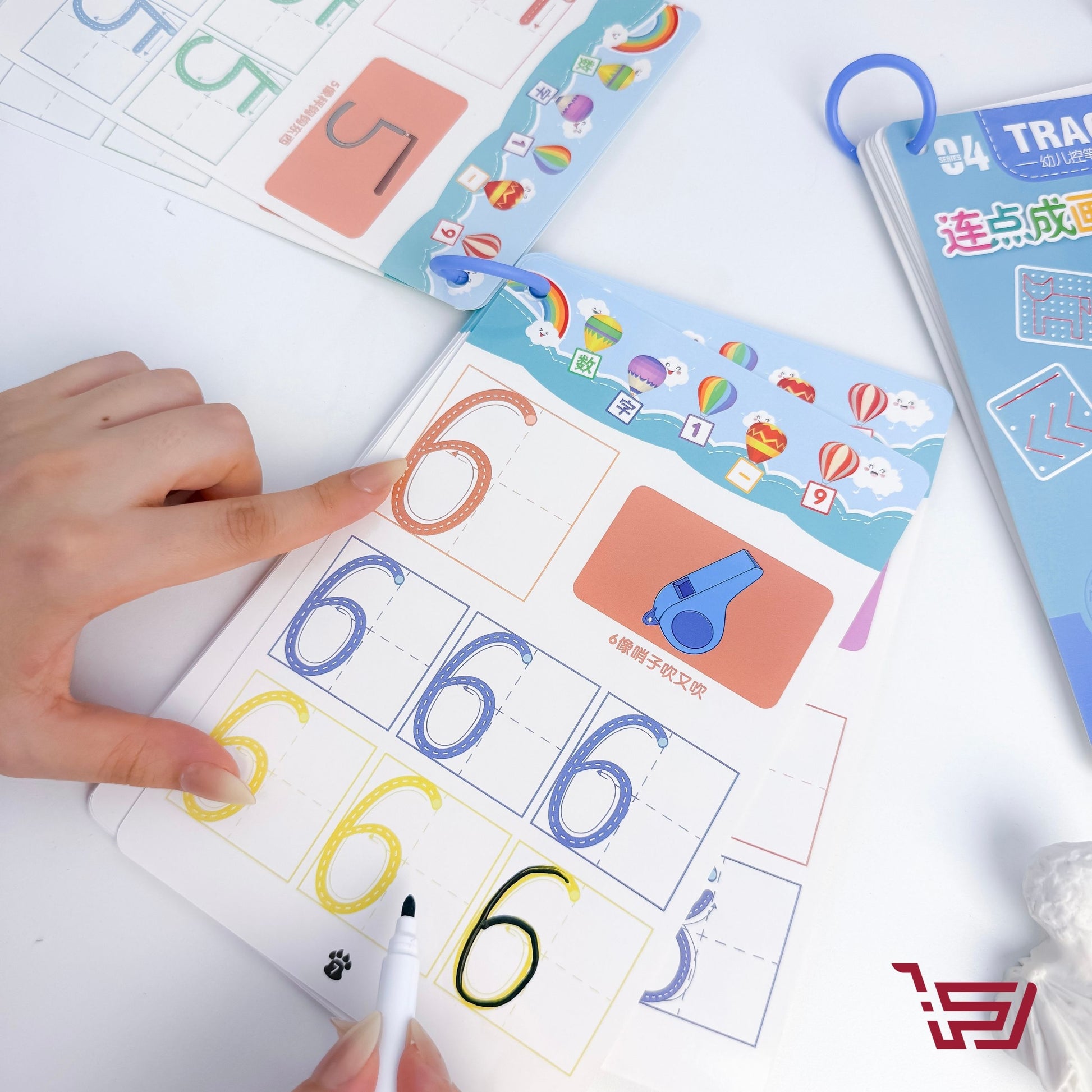 اللون الاخضر: يساعد الاطفال على تعلم والتدريب الحروف الانكليزية والارقام من خلال تتبع النقاط او الخطوط