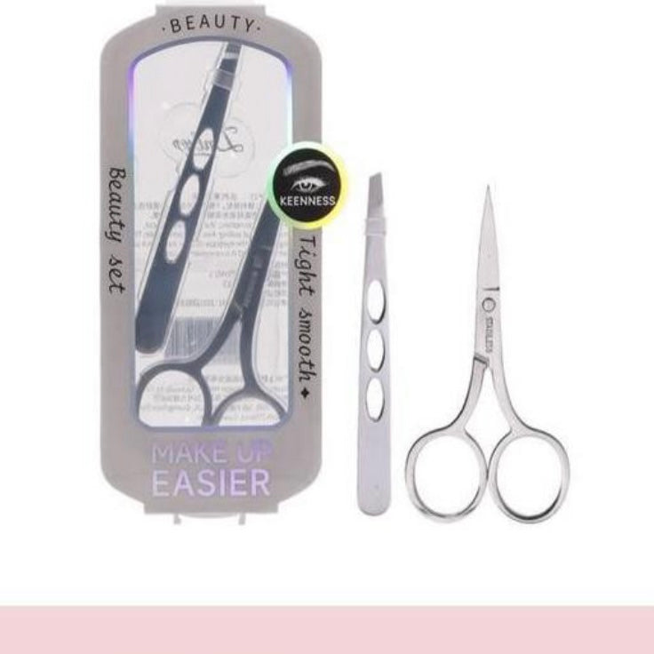 سيت مقص وملقط من الفولاذ المقاوم للصدأ لتنظيف وترتيب الحواجب بكل سهولة.