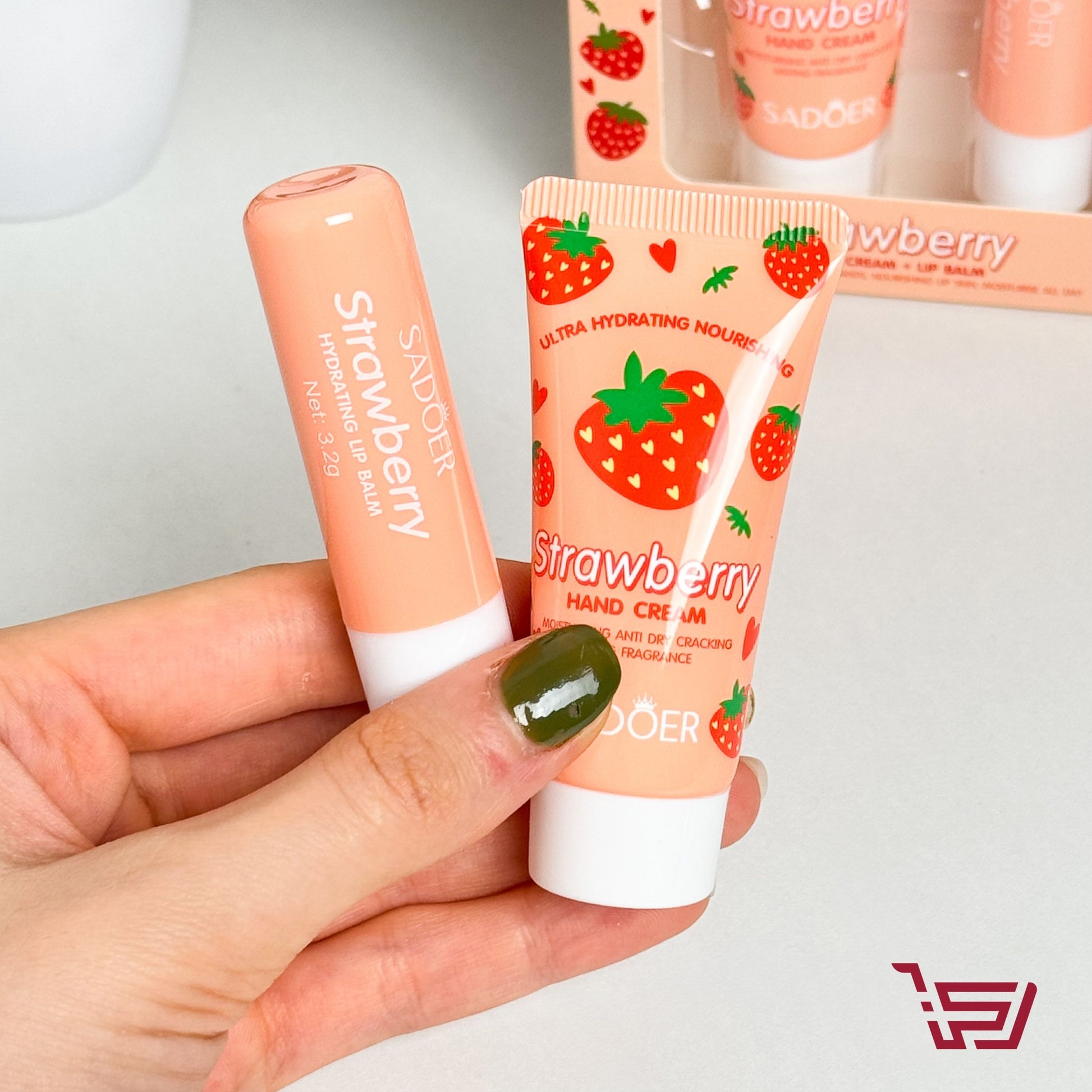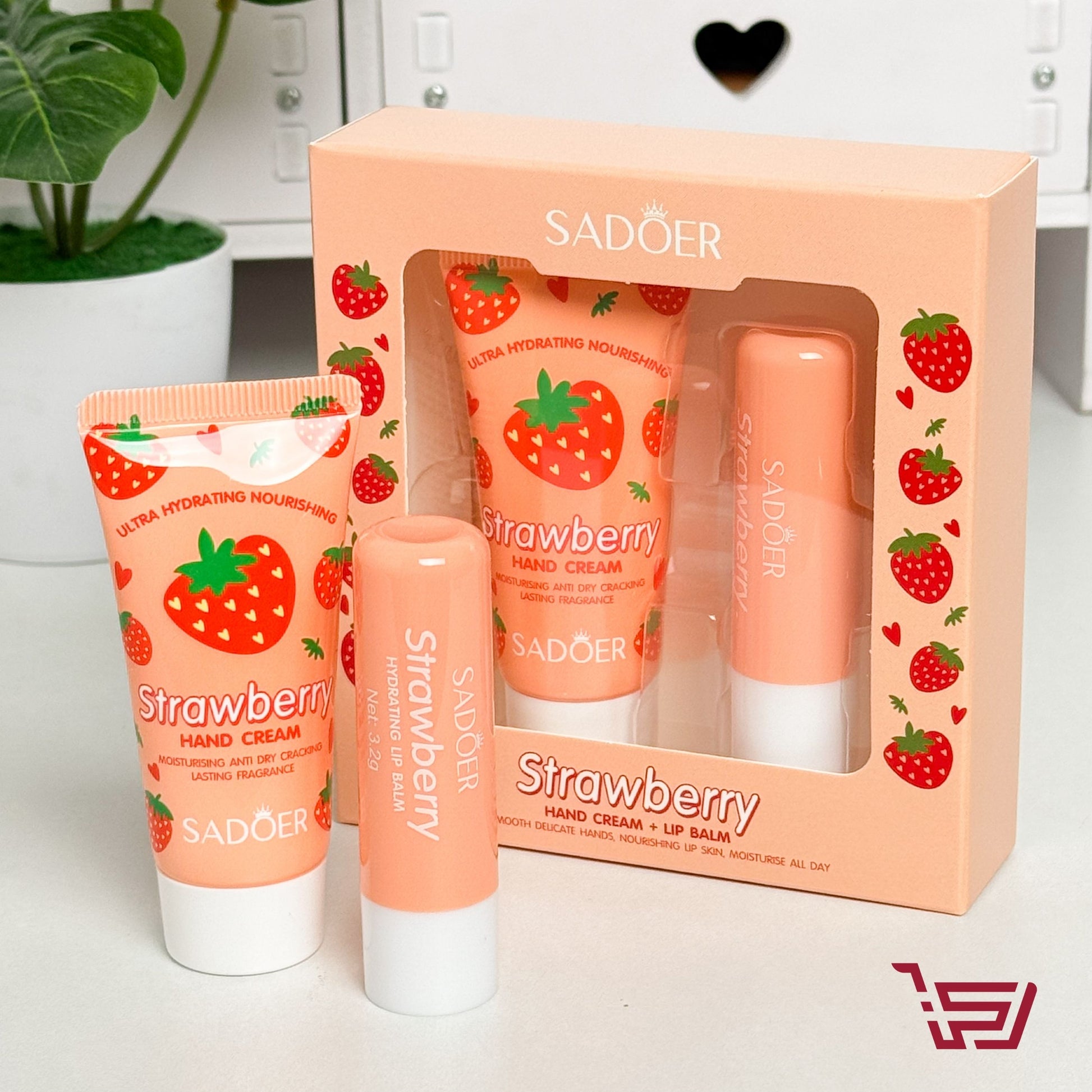 توفر مجموعة الترطيب الفراولة على ترطيب عالي وعناية للشفاه واليدين, مع مكونات مهدئة.