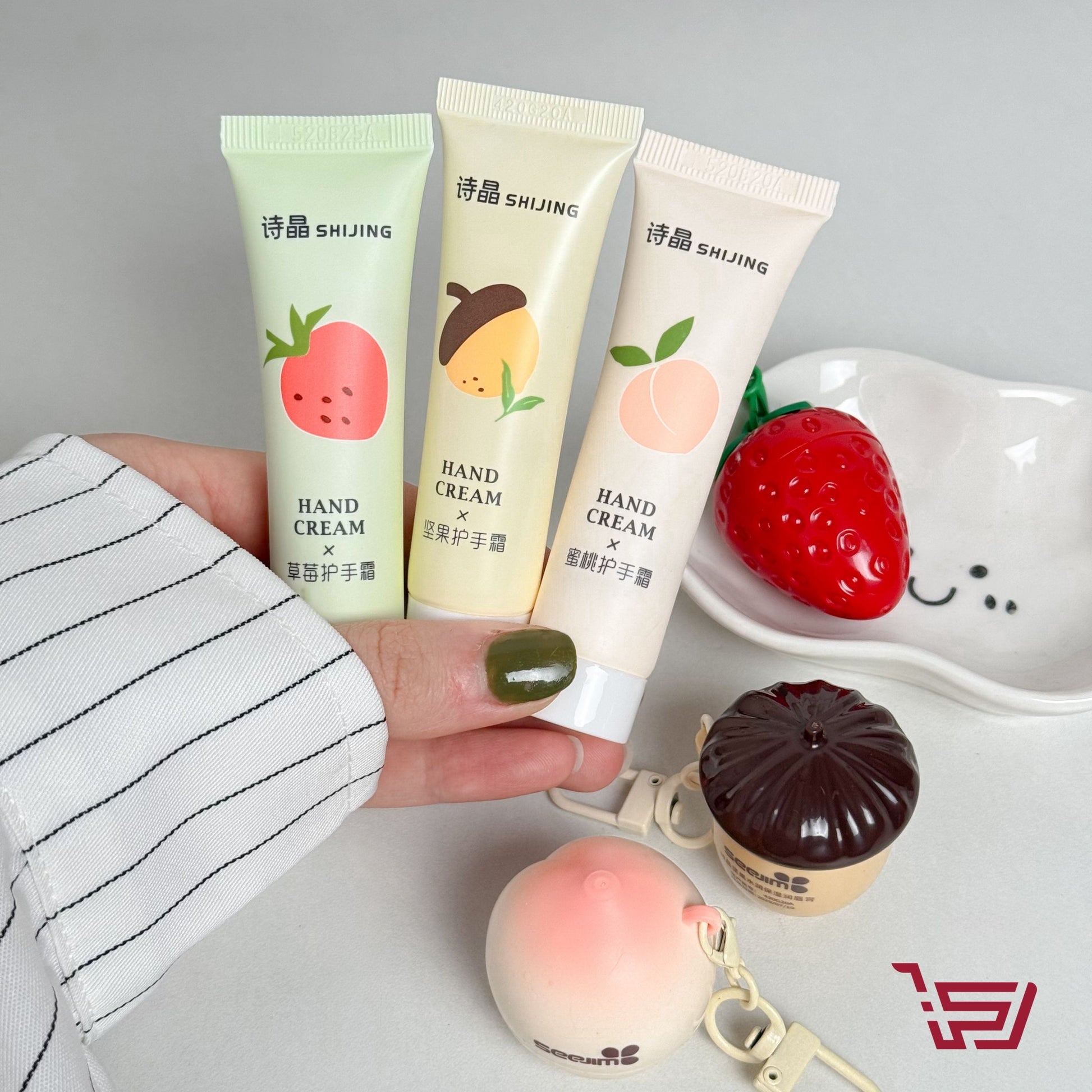 توفر مجموعة الترطيب بثلاث نكهات مختلفة من الفراولة والخوخ والبلوط على ترطيب وعناية للشفاه واليدين, مع مكونات مهدئة.