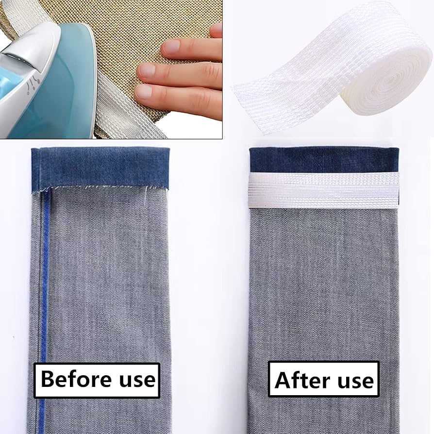 شريط لاصق قوي مصنوع من قماش غير منسوج، يُستخدم لتثبيت الحواف أو تعديل الملابس بدون الحاجة للخياطة.
