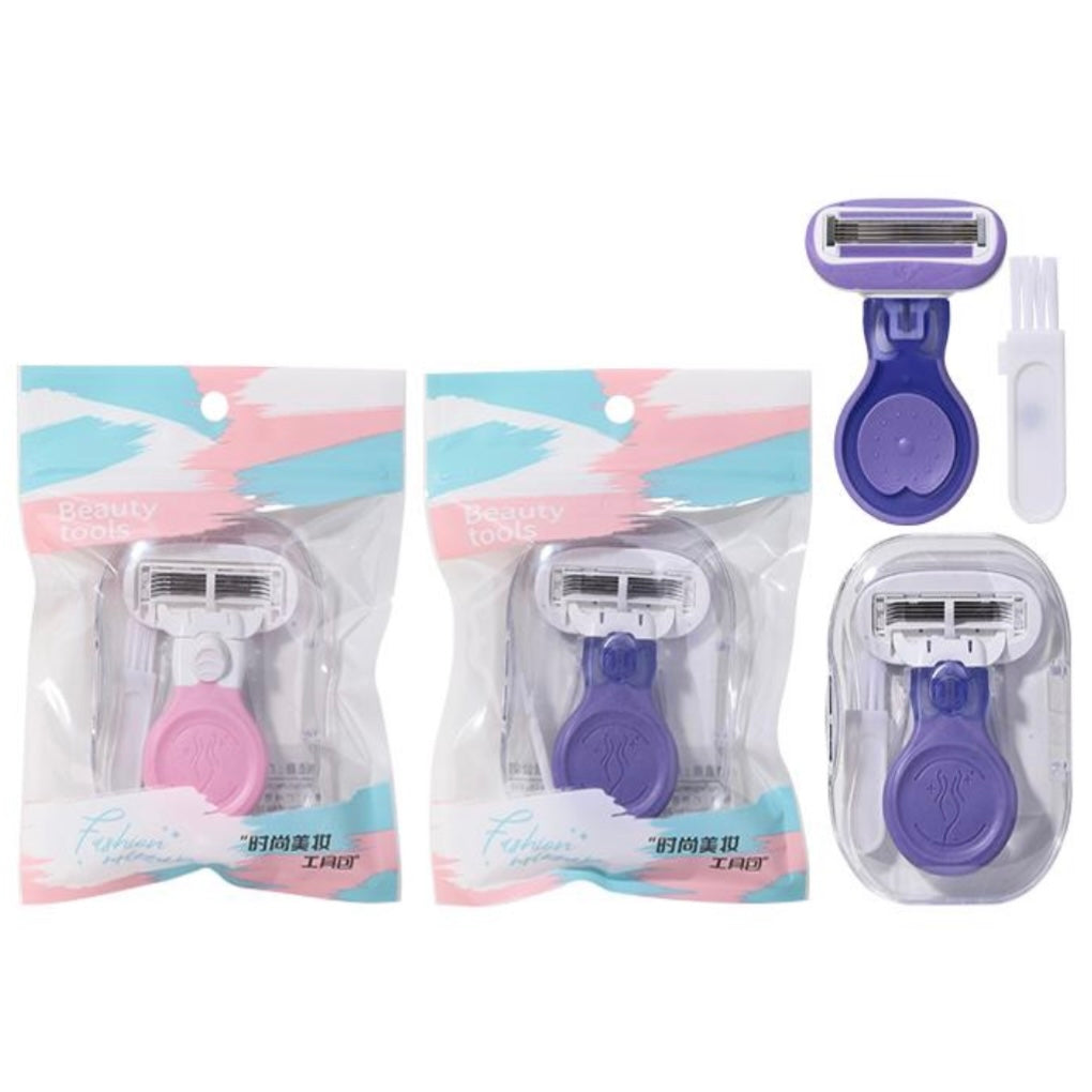 ماكينة حلاقة نسائية محمولة بخمس شفرات ورأس مرن، تأتي بحجم صغير دائري مع غطاء حماية وفرشاة تنظيف لسهولة الاستخدام