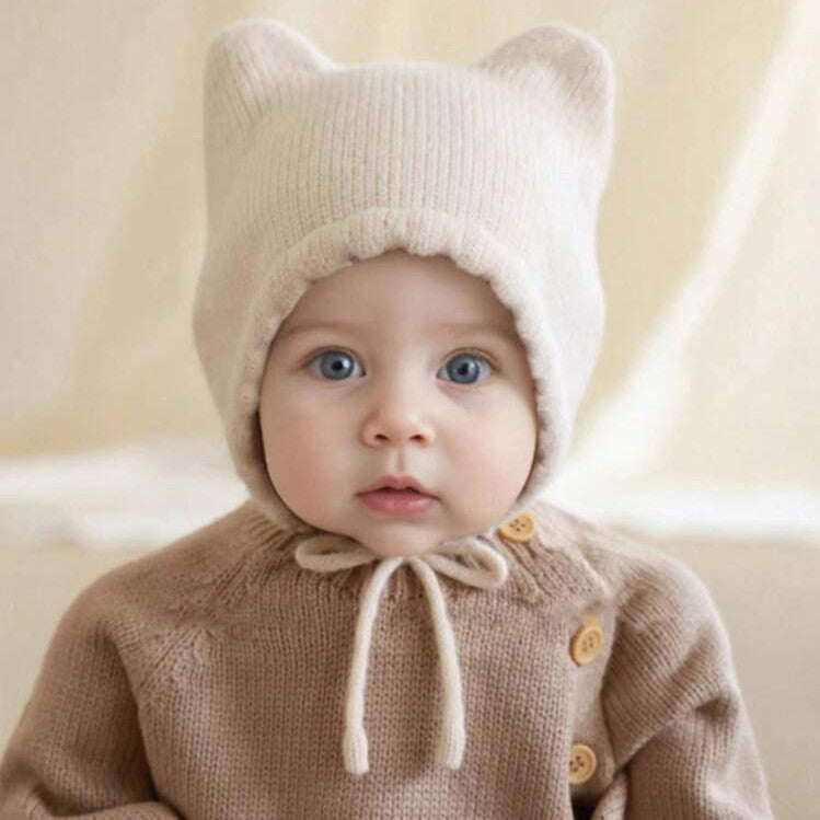 قبعة اطفال صوف بشكل القطة