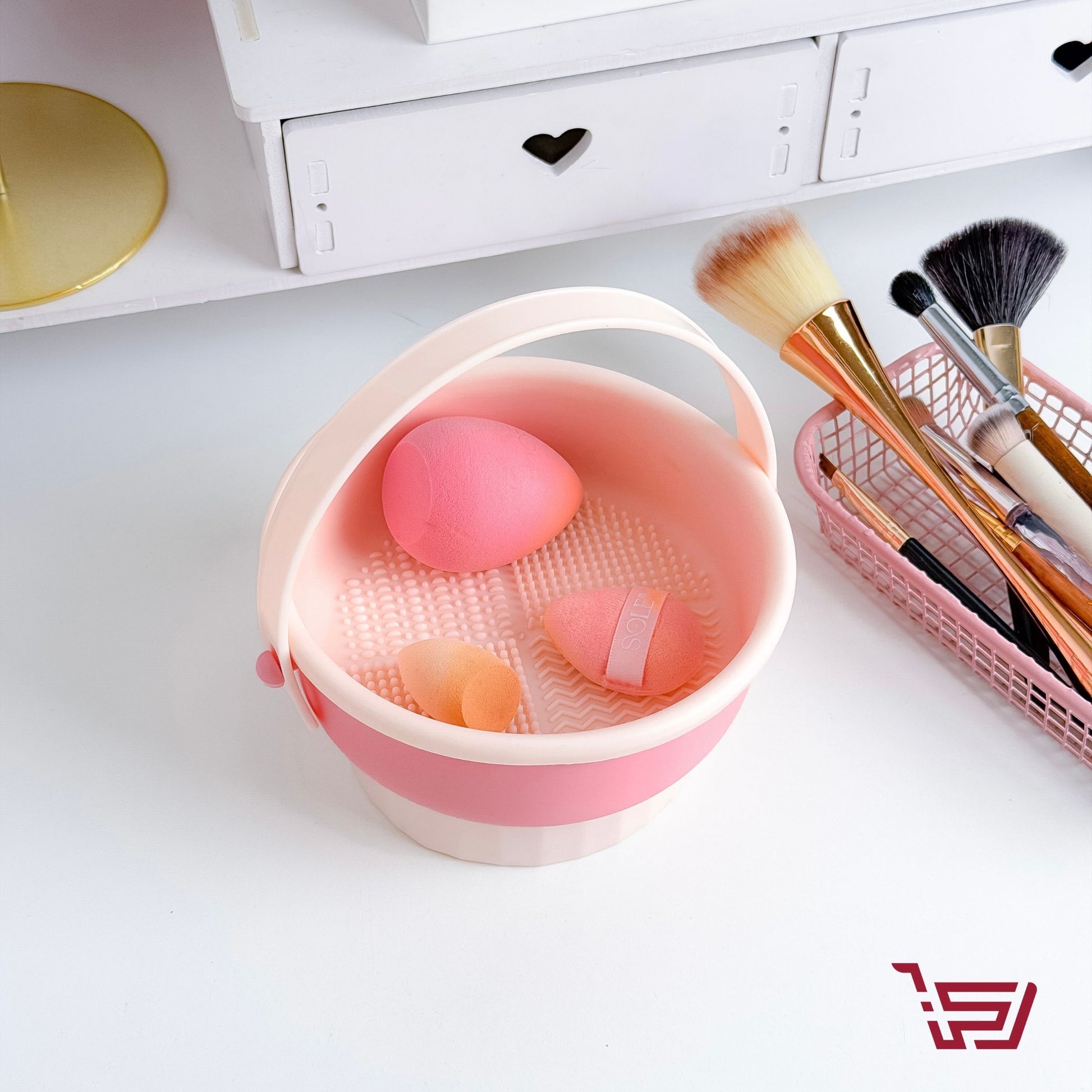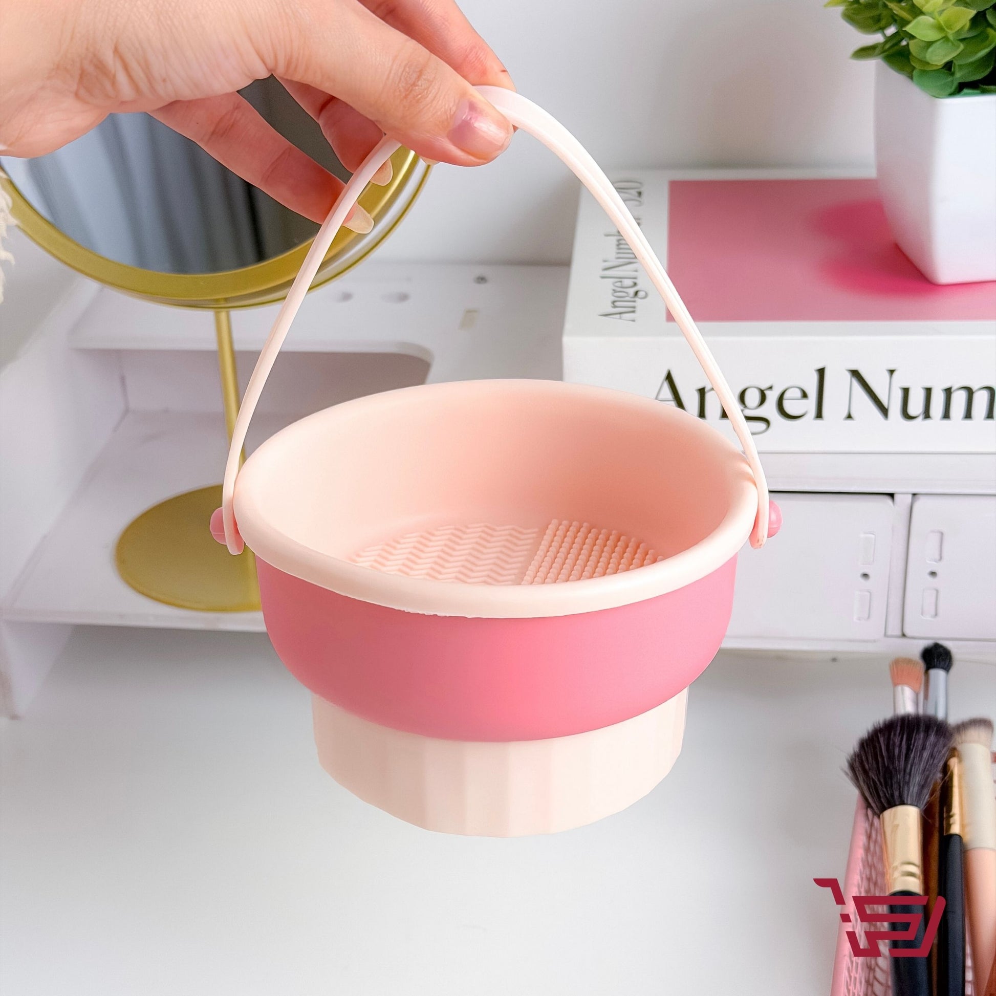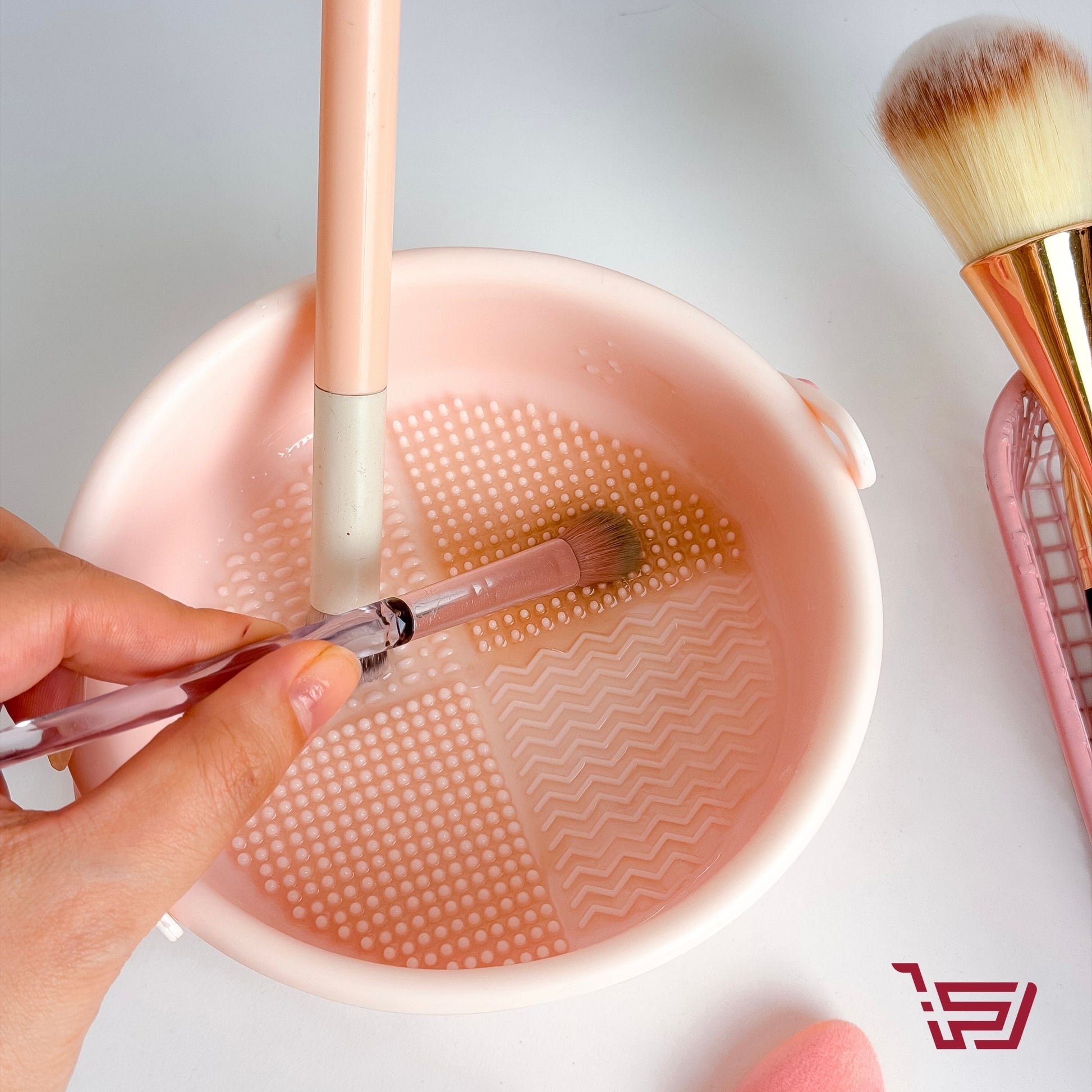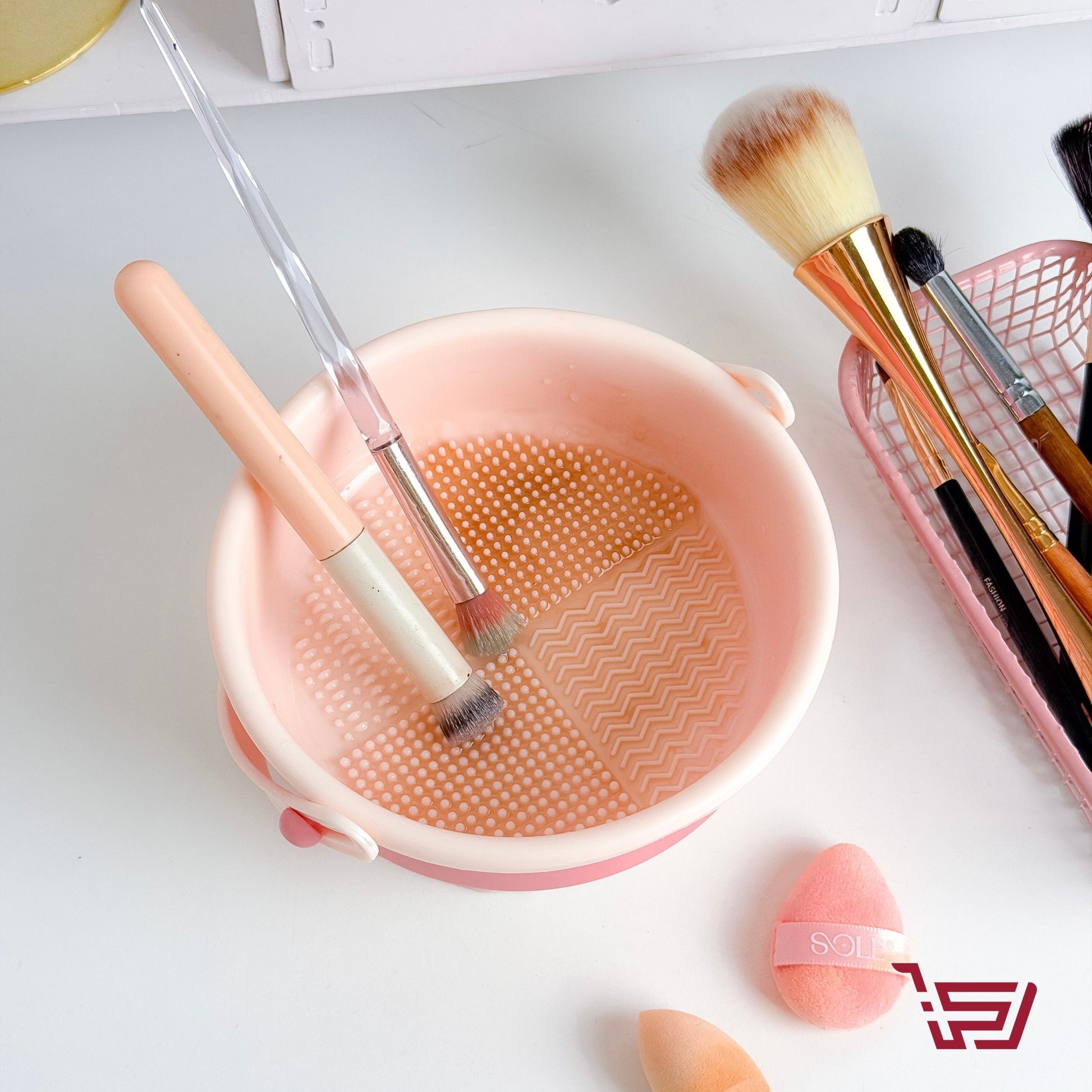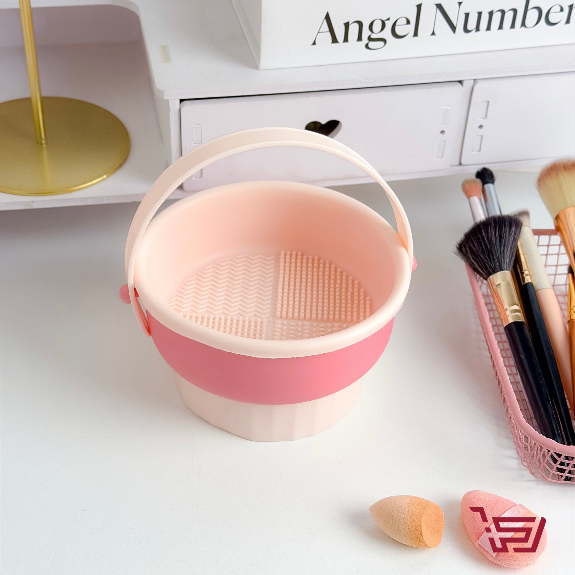 وعاء غسيل فرش المكياج بتصميم ثلاثي الوظائف يدمج الغسيل والتجفيف والتخزين في منتج واحد متكامل.